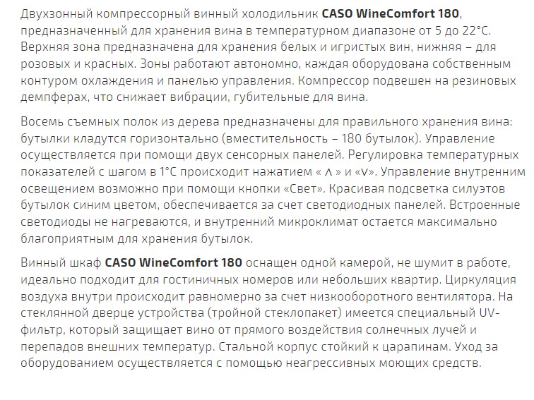 Винный шкаф Caso (Касо) WineComfort 180