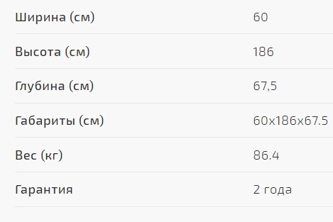 186x60x67.5 см |