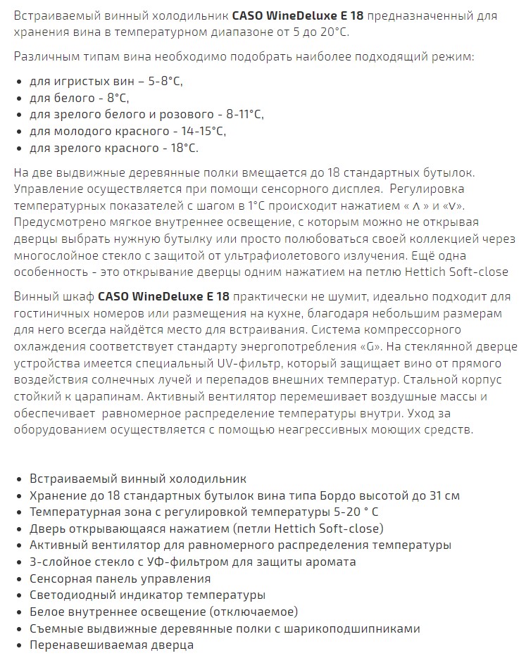Винный шкаф Caso (Касо) WineDeluxe E 18