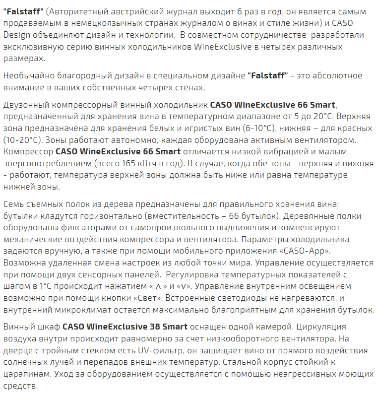 Винный шкаф Caso (Касо) WineExclusive 66 Smart