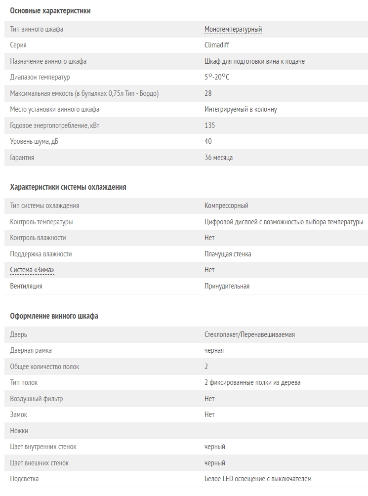 Винный шкаф Climadiff (Климадифф) CBI28S1B