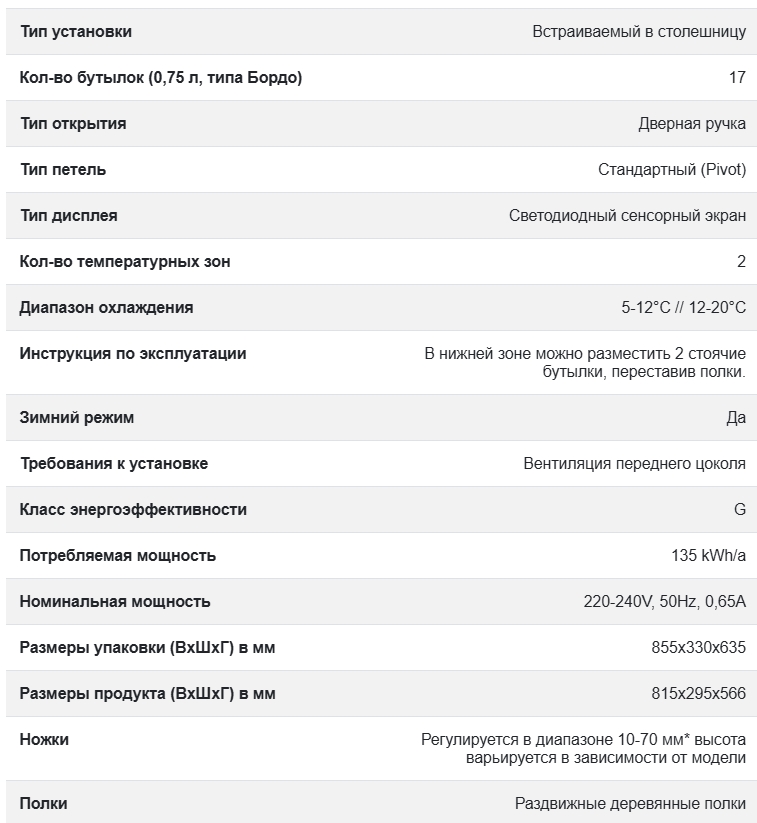 Емкость винного шкафа (в бутылках 0,75 л.) |