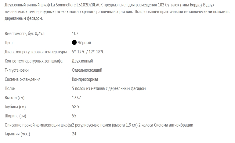 Винный шкаф LaSommeliere (ЛаСоммельер) LS102DZBLACK