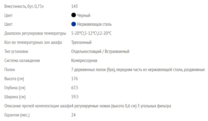 Винный шкаф LaSommeliere (ЛаСоммельер) MT145TZ