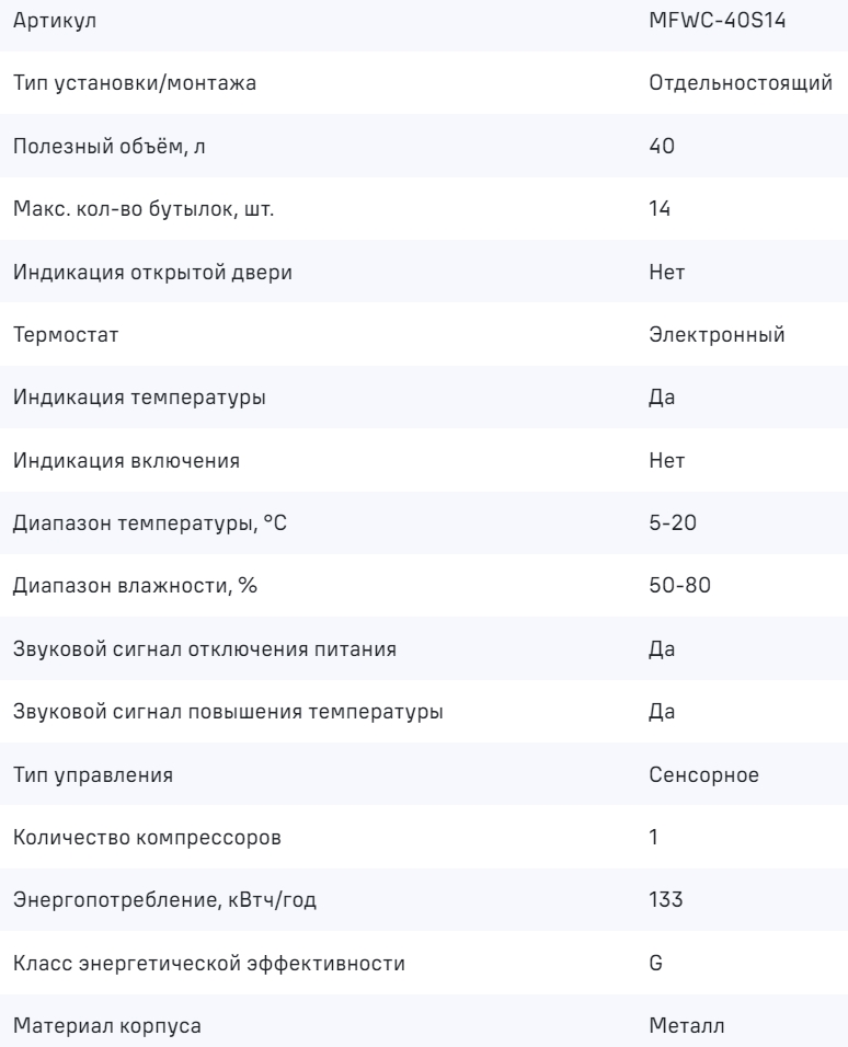 Винный шкаф MAUNFELD (Маунфилд) MFWC-40S14