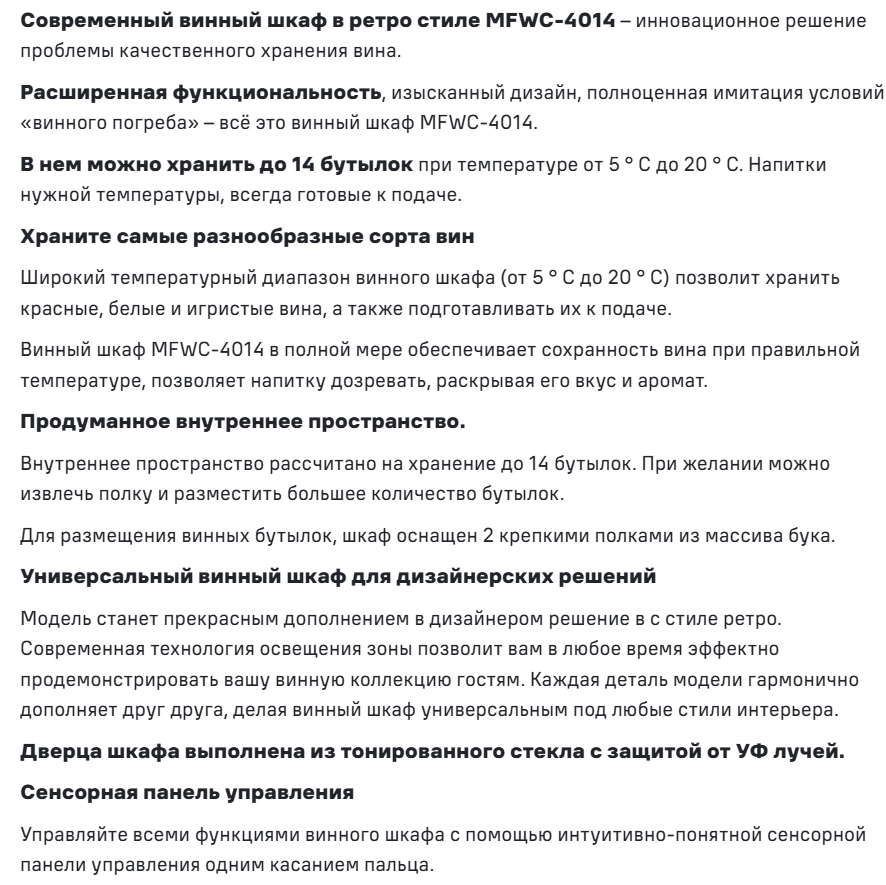 Винный шкаф MAUNFELD (Маунфилд) MFWC-40SCH14