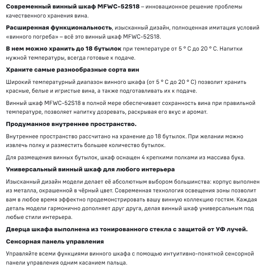 Винный шкаф MAUNFELD (Маунфилд) MFWC-52S18