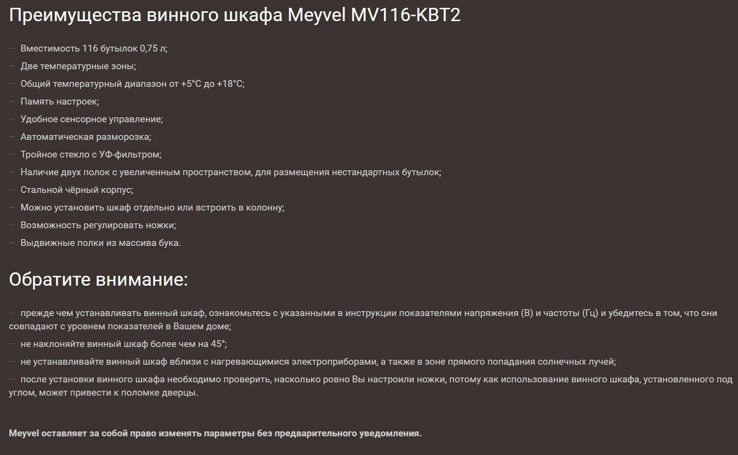 Винный шкаф Meyvel (Мейвел) MV116-KBT2