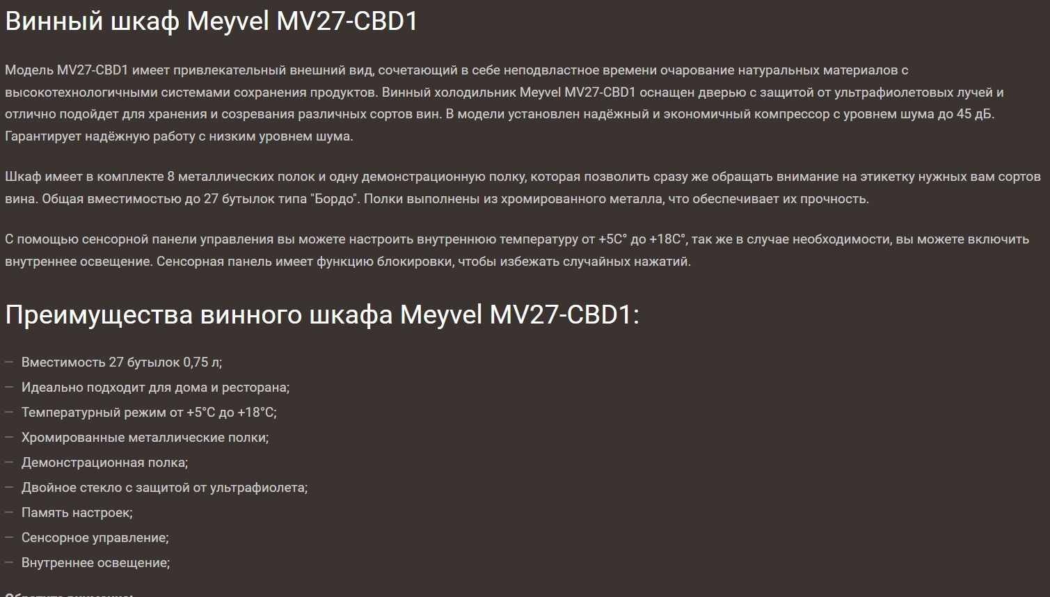 Винный шкаф Meyvel (Мейвел) MV27-CBD1