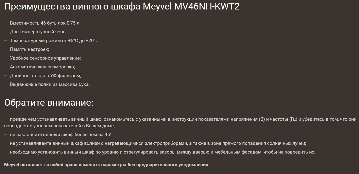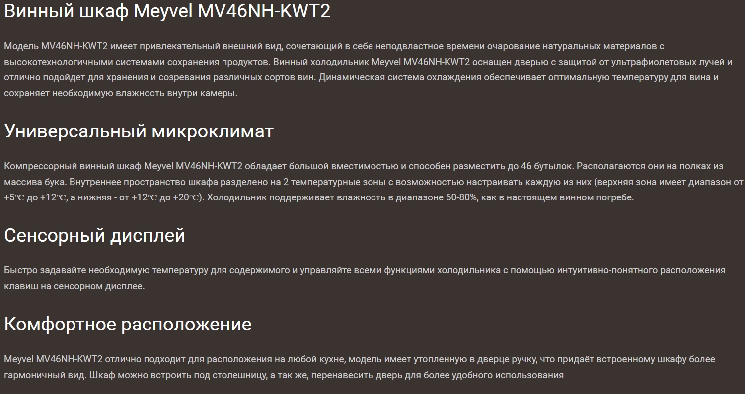 Винный шкаф Meyvel (Мейвел) MV46NH-KWT2