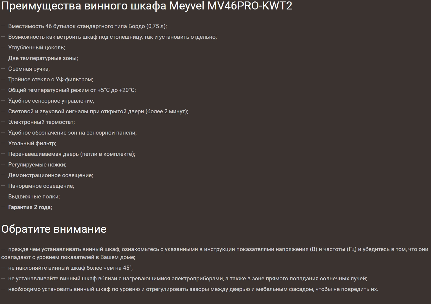 Винный шкаф Meyvel (Мейвел) MV46PRO-KWT2