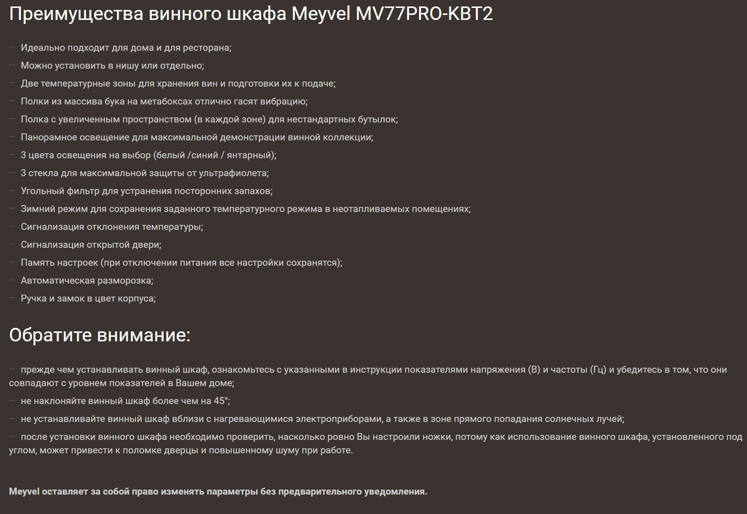 Винный шкаф Meyvel (Мейвел) MV77PRO-KBT2