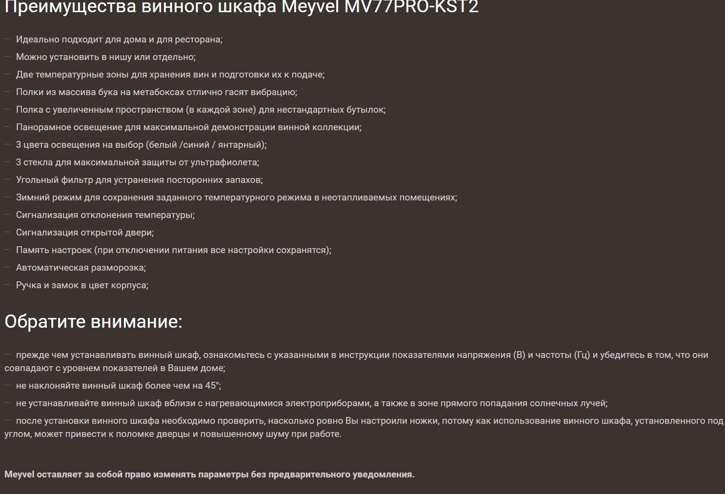 Винный шкаф Meyvel (Мейвел) MV77PRO-KST2