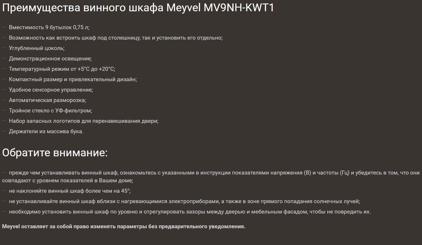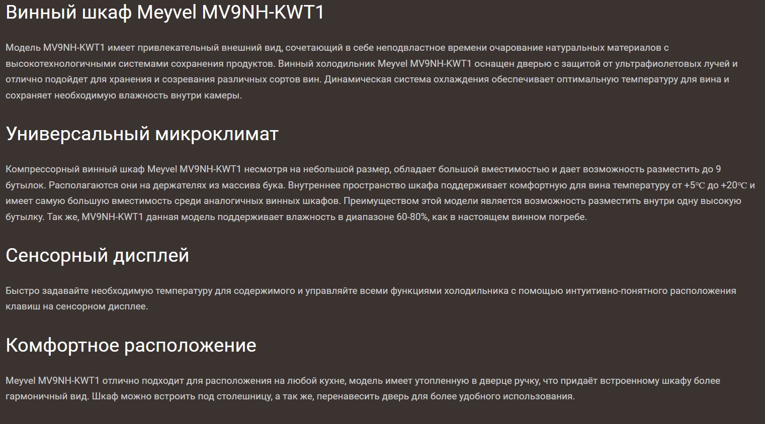 Винный шкаф Meyvel (Мейвел) MV9NH-KWT1