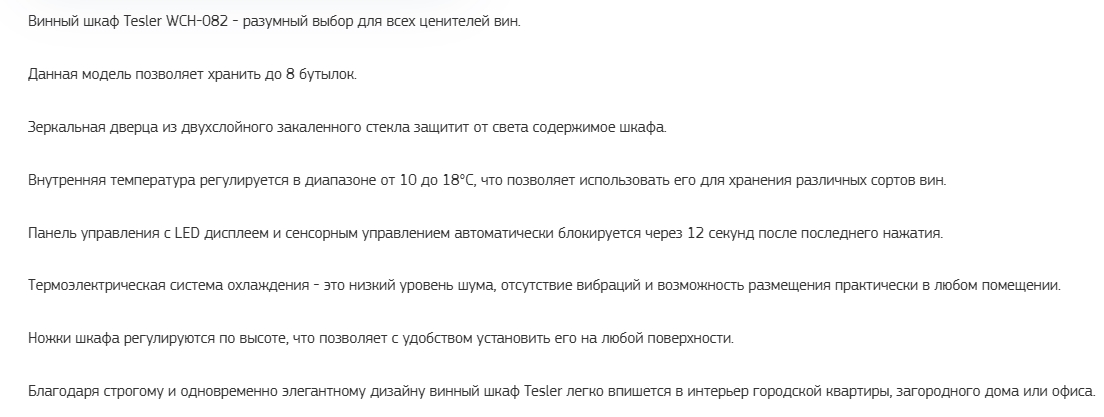 Винный шкаф Tesler (Теслер) WCH-082