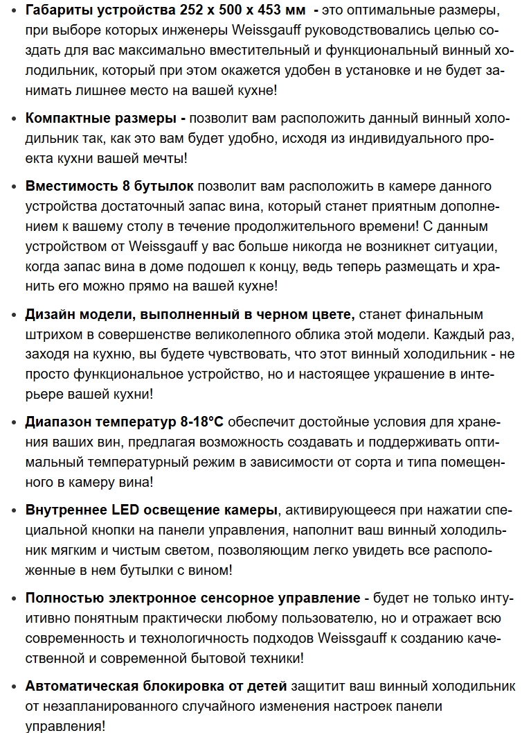 Винный шкаф Weissgauff (Вайсгауф) WWC-08 Bottle