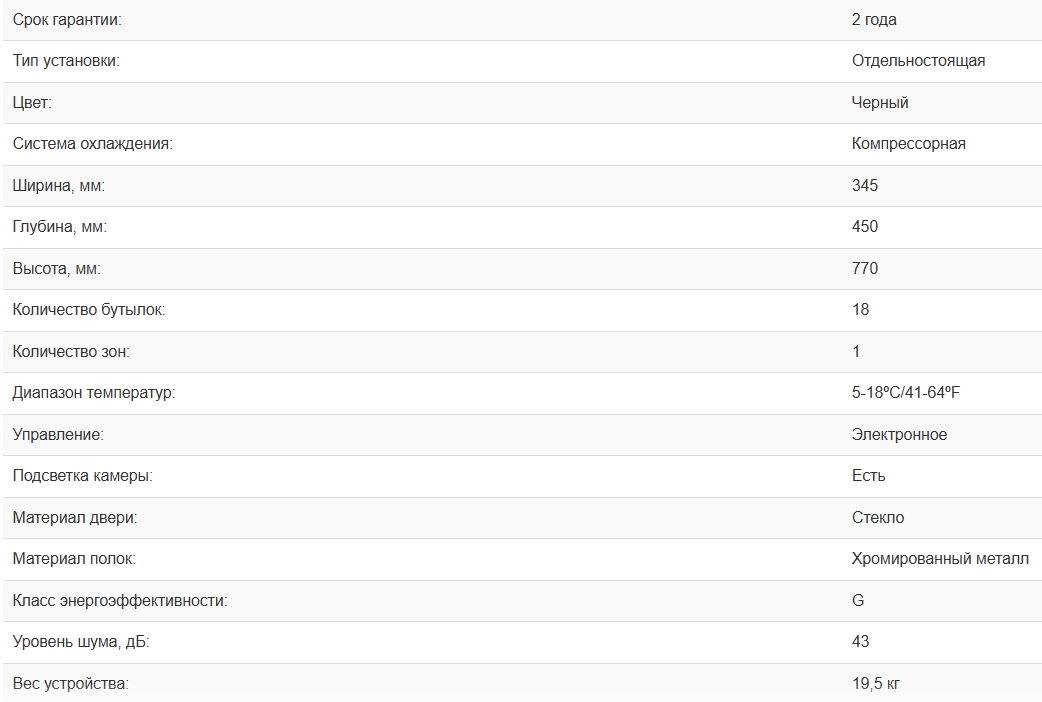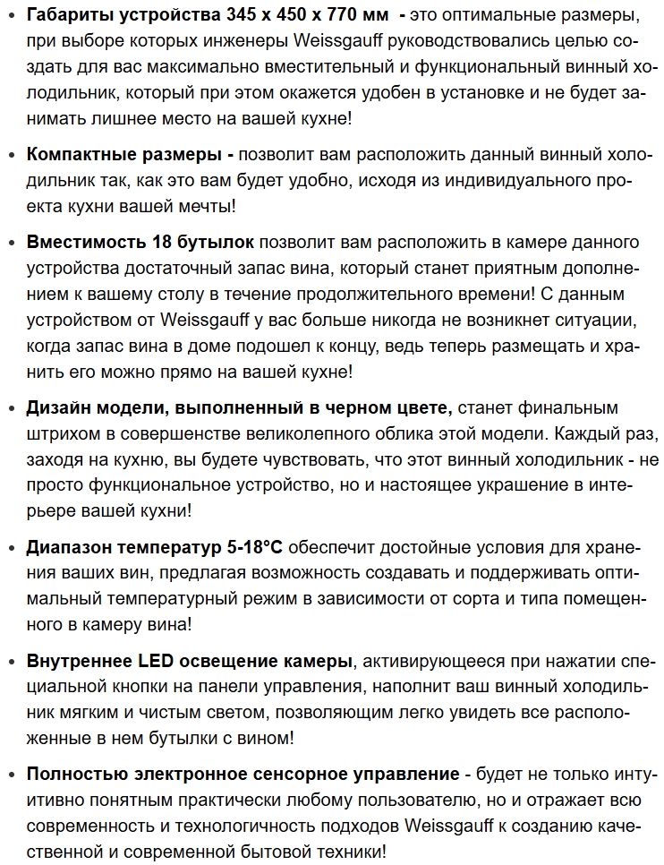 Винный шкаф Weissgauff (Вайсгауф) WWC-18 Bottle