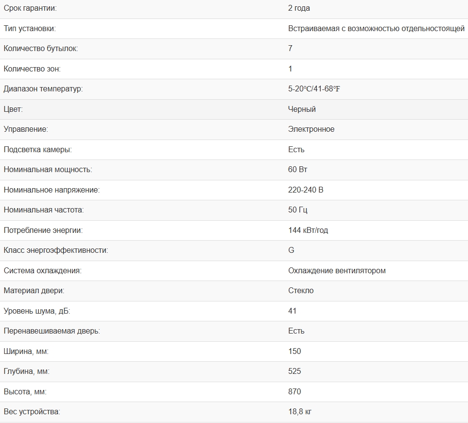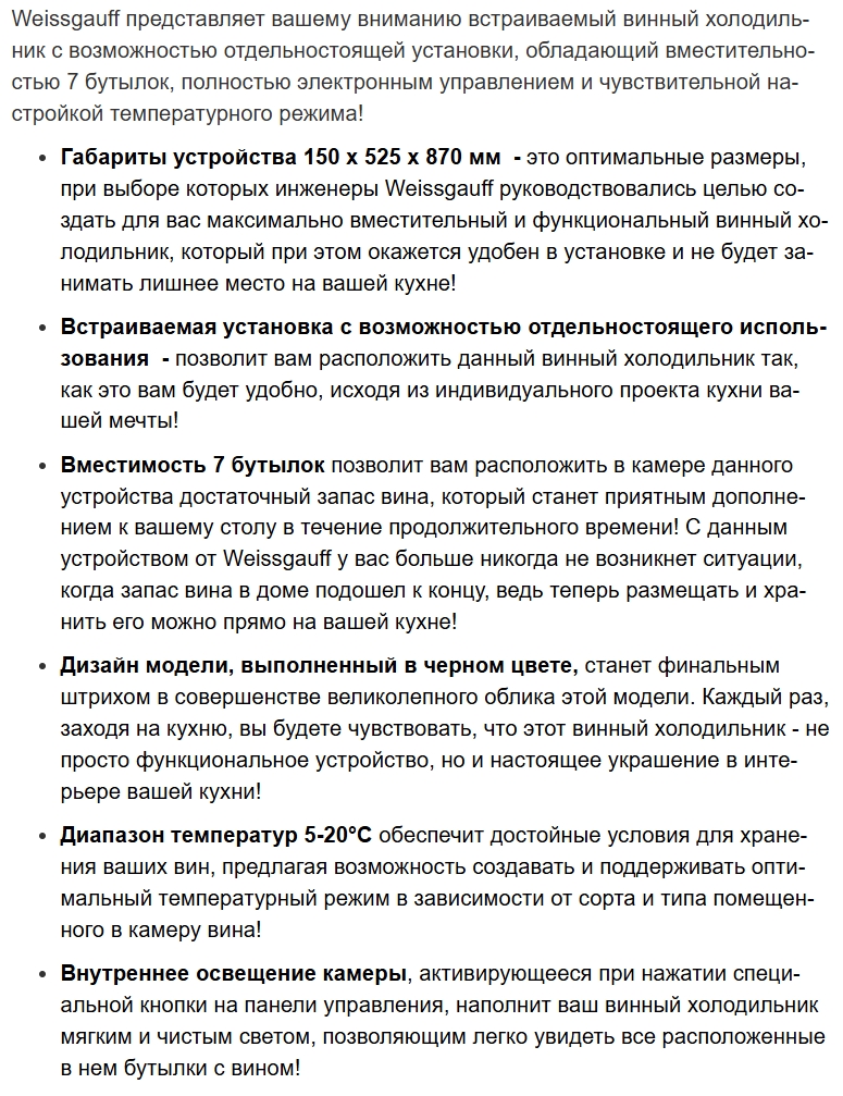 Винный шкаф Weissgauff (Вайсгауф) WWC-7 B