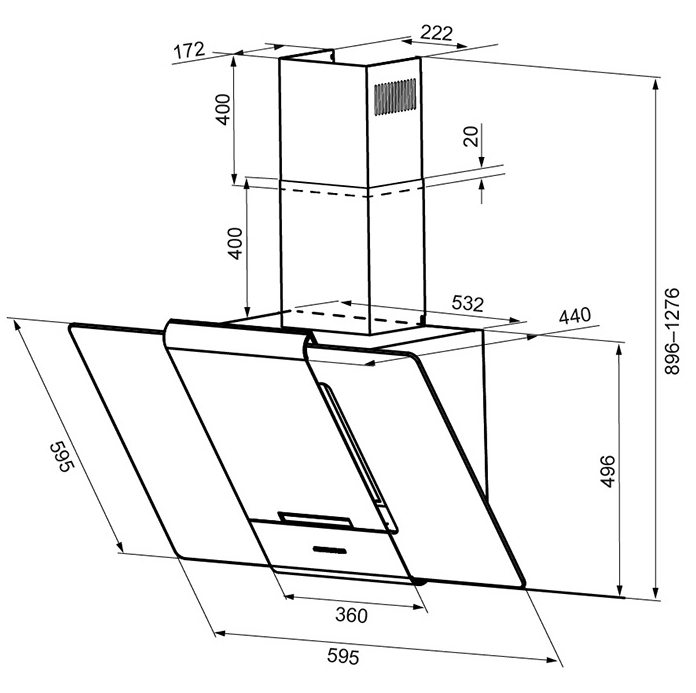 Вытяжка Krona TALLI 600 inox black glass 3P