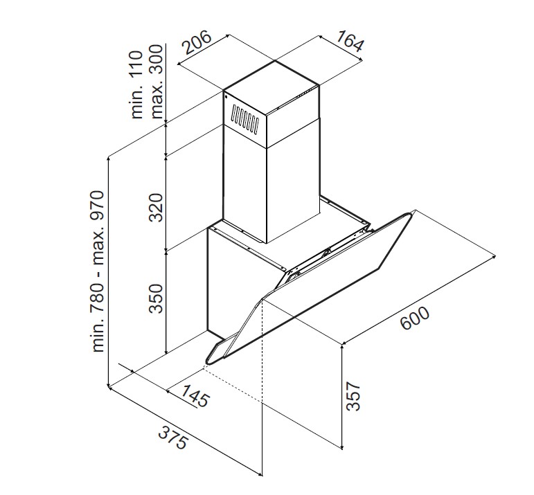 м3/час, 3 скорости, сенсорное управление, алюминиевый фильтр, освещение