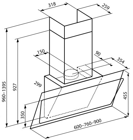 техники, создавая полноценное решение в стиле Hi-Tech. Ширина 60 см Размеры вытяжки должны соответствовать