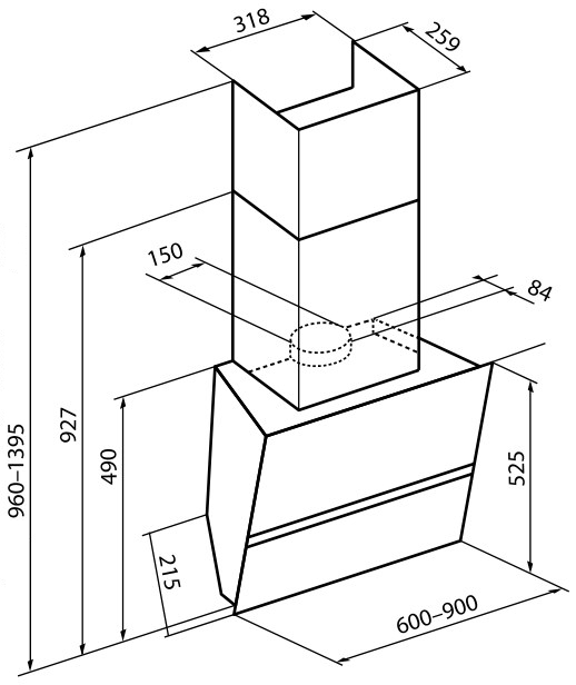 техники, создавая полноценное решение в стиле Hi-Tech. Ширина 60 см Размеры вытяжки должны соответствовать