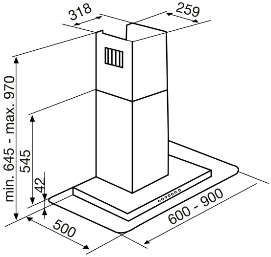 размерам рабочей поверхности, над которой она устанавливается. Вытяжка будет