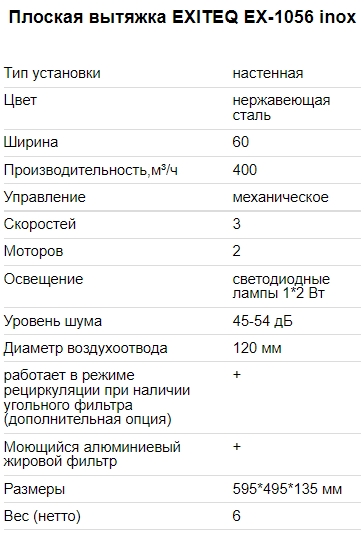 Вытяжка EXITEQ (Экзитег) EX - 1056 Inox
