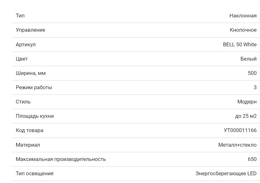 Вытяжка HOMSair (ХОМСэйр) BELL 50 БЕЛЫЙ
