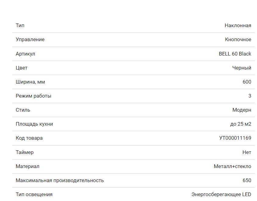 Вытяжка HOMSair (ХОМСэйр) BELL 60 ЧЕРНЫЙ