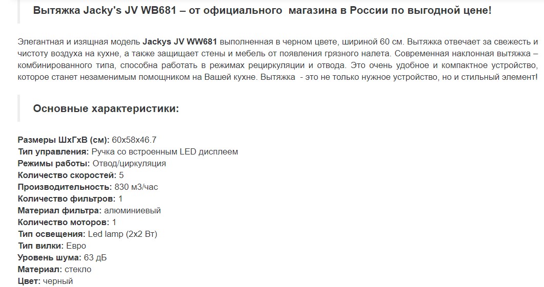 Вытяжка Jacky's (Джекис) JV WB681
