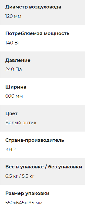 Вытяжка Lex (Лекс) SIMPLE 600 IVORY LIGHT