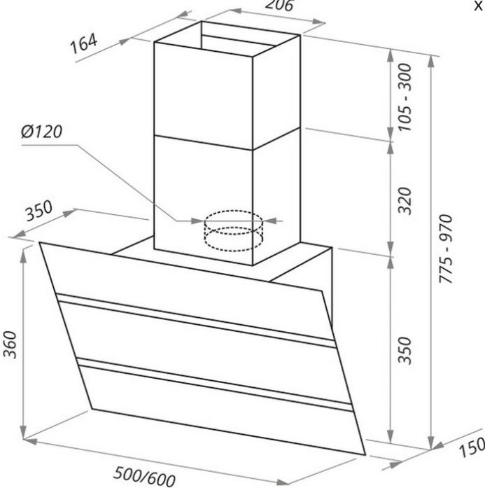 Вытяжка MAUNFELD (Маунфилд) BRIDGE 50 INOX Glass Black