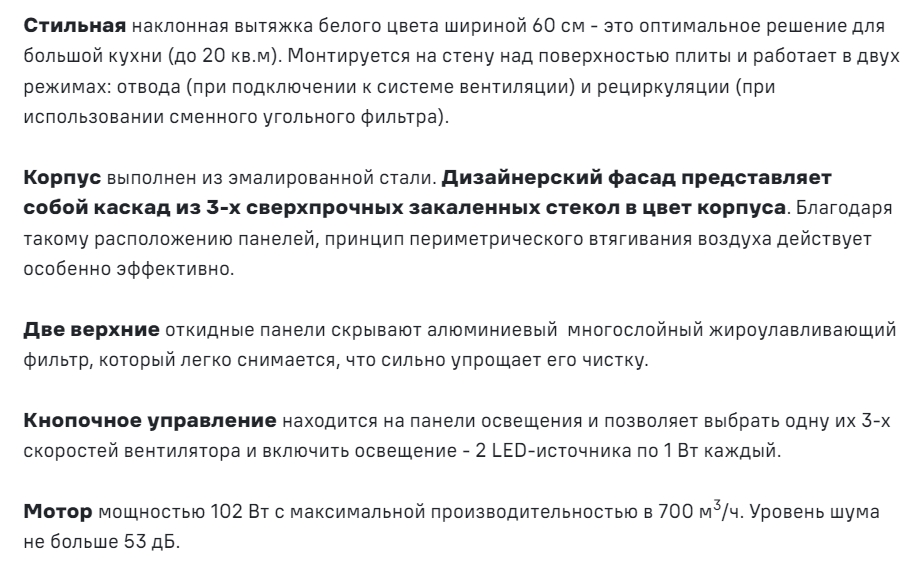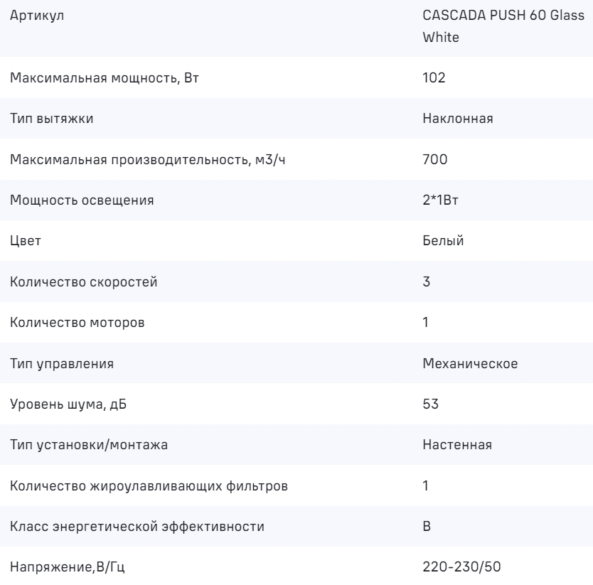 Вытяжка MAUNFELD (Маунфилд) CASCADA PUSH 60 Белый