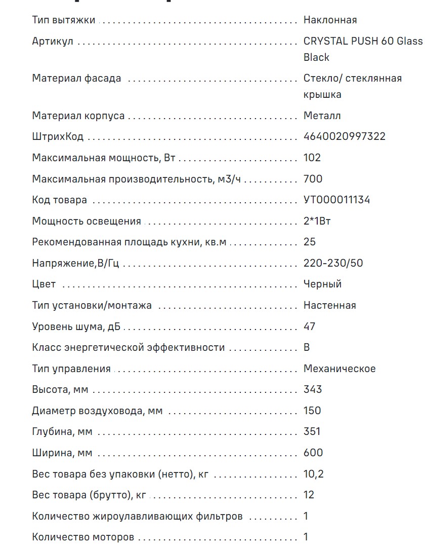Вытяжка MAUNFELD (Маунфилд) Crystal Push 60 черный