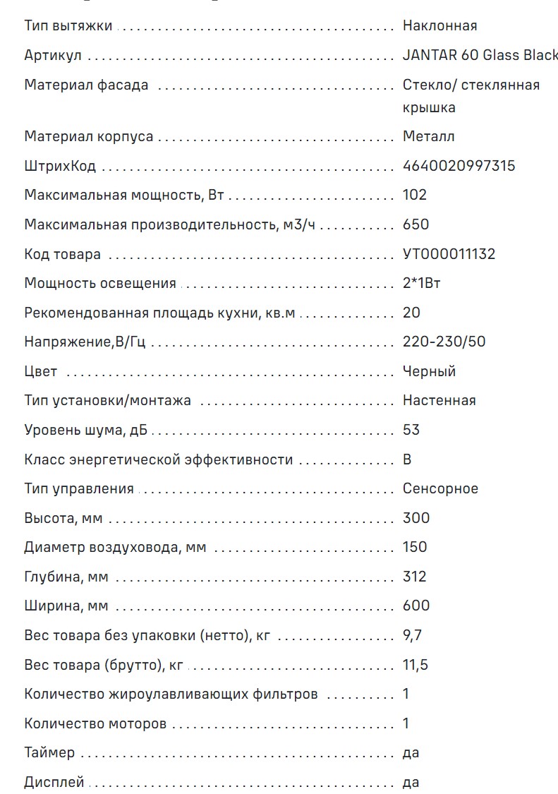 Вытяжка MAUNFELD (Маунфилд) Jantar 60 черный