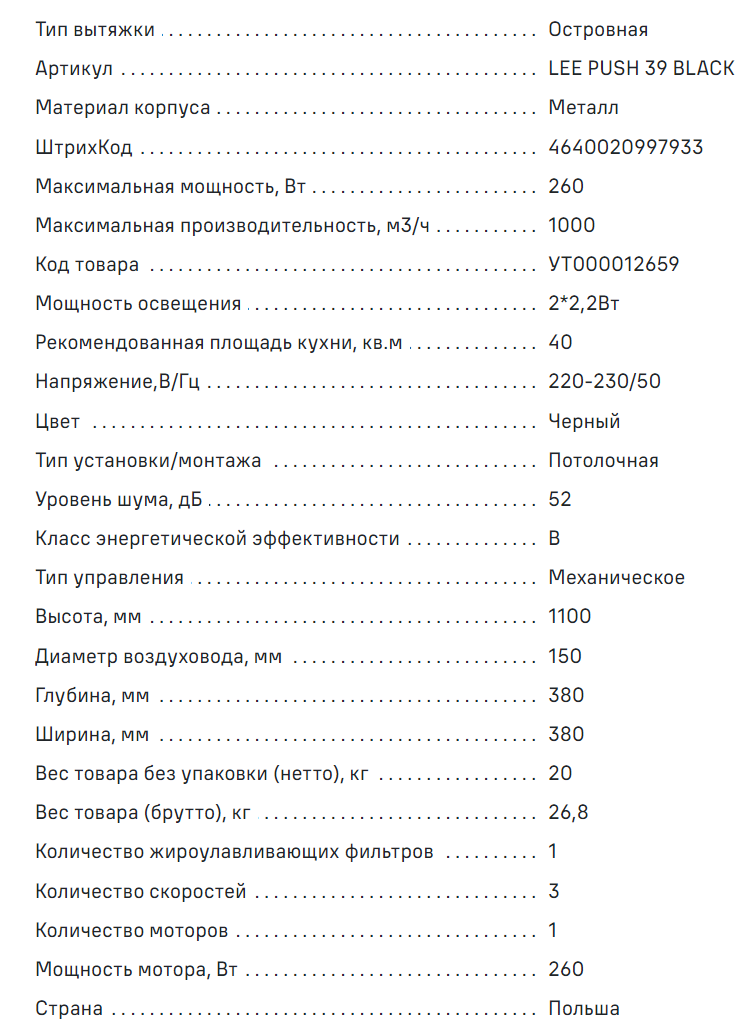 Вытяжка MAUNFELD (Маунфилд) LEE PUSH 39 черный