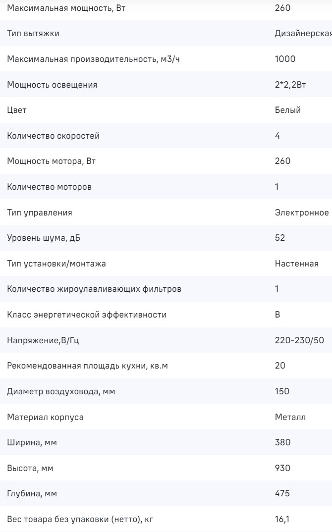 Вытяжка MAUNFELD (Маунфилд) LEE WALL (C) 39 WHITE
