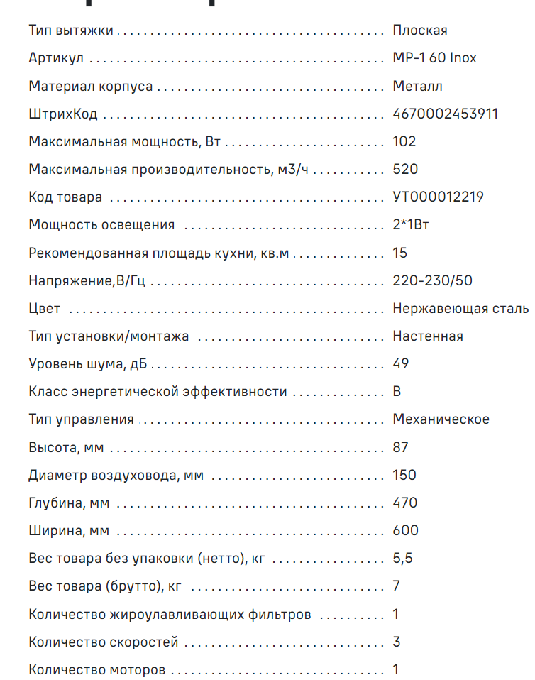 Вытяжка MAUNFELD (Маунфилд) MP-1 60 Inox