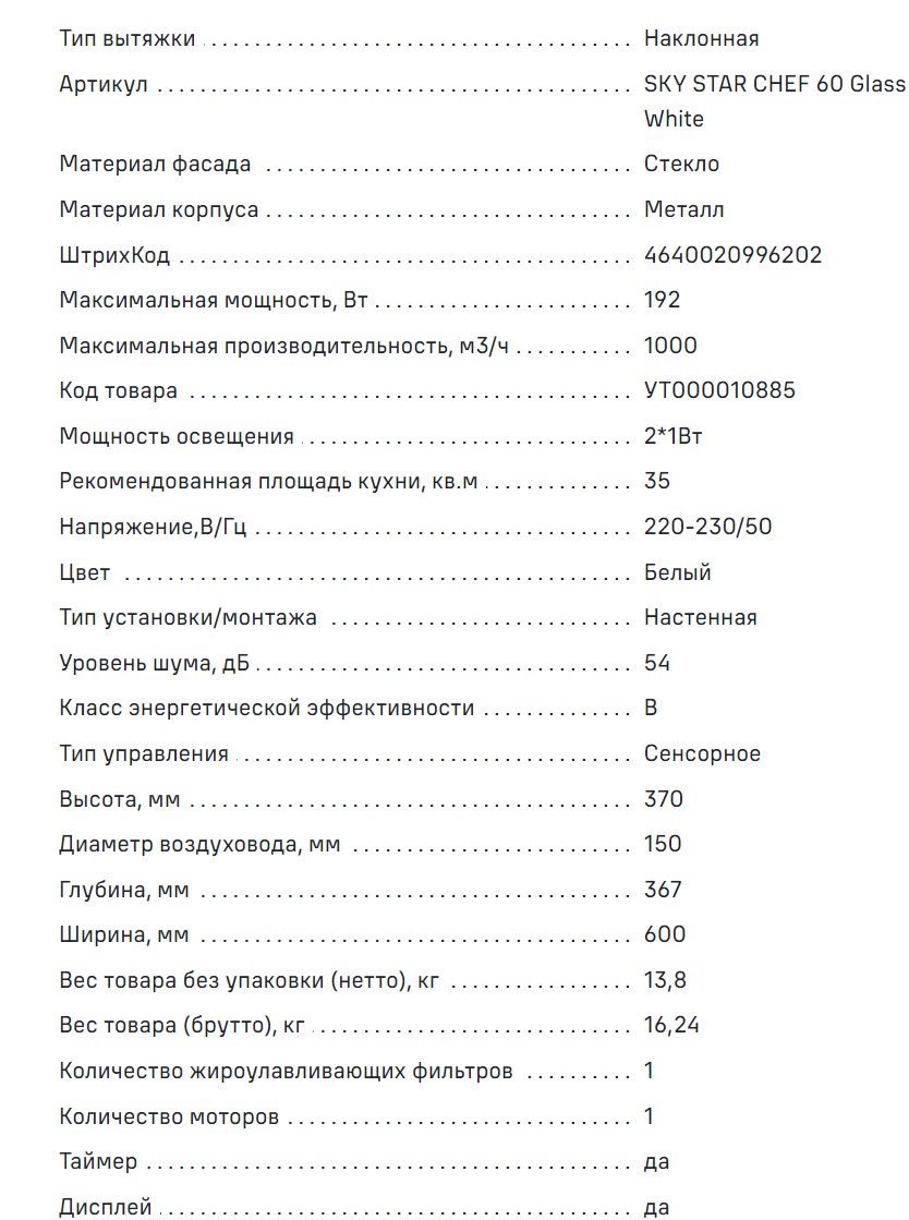 Вытяжка MAUNFELD (Маунфилд) Sky Star Chef 60 белый