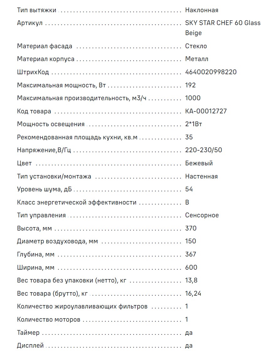 Вытяжка MAUNFELD (Маунфилд) Sky Star Chef 60 бежевый