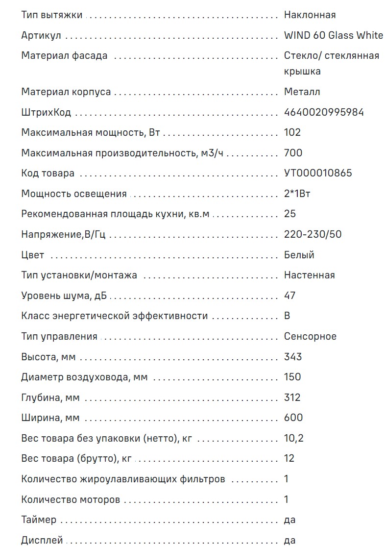 Вытяжка MAUNFELD (Маунфилд) Wind 60 белый
