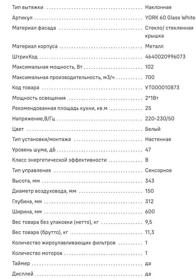 Вытяжка MAUNFELD (Маунфилд) York 60 белый
