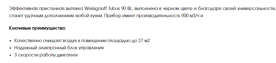 Вытяжка Weissgauff (Вайсгауф) Tubus 90 BL