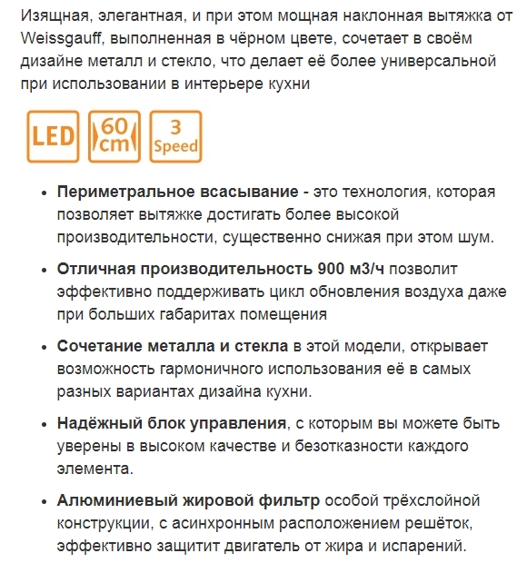 Вытяжка Weissgauff (Вайсгауф) GAMMA 60 PB BL