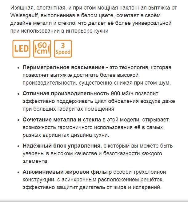 Вытяжка Weissgauff (Вайсгауф) GAMMA 60 PB WH