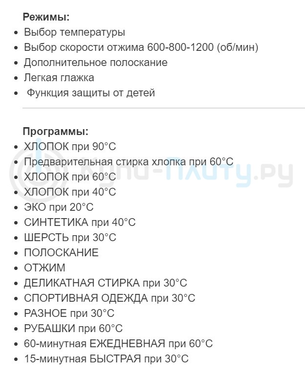 Интеллектуальное управление стиркой: |