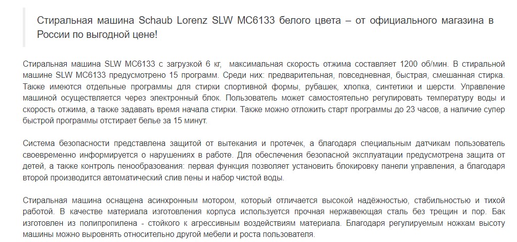 Стиральная машина Schaub Lorenz (Шауб Лоренц) SLW MC6133