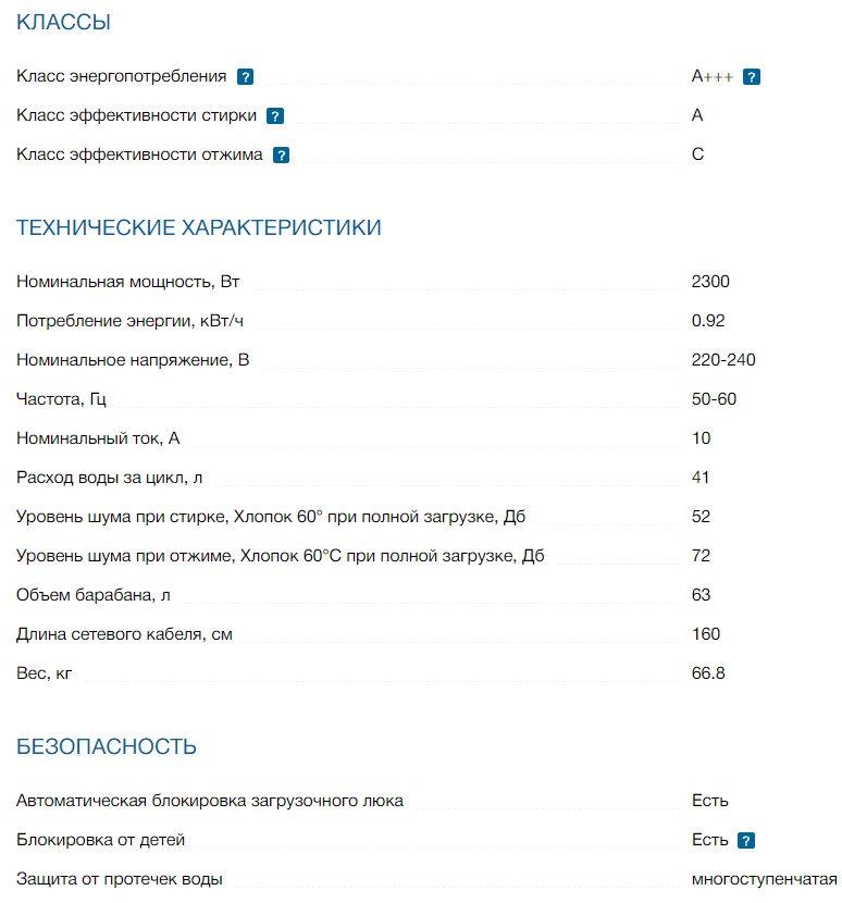 Класс эффективности отжима |