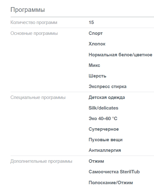 Режимы стирки |